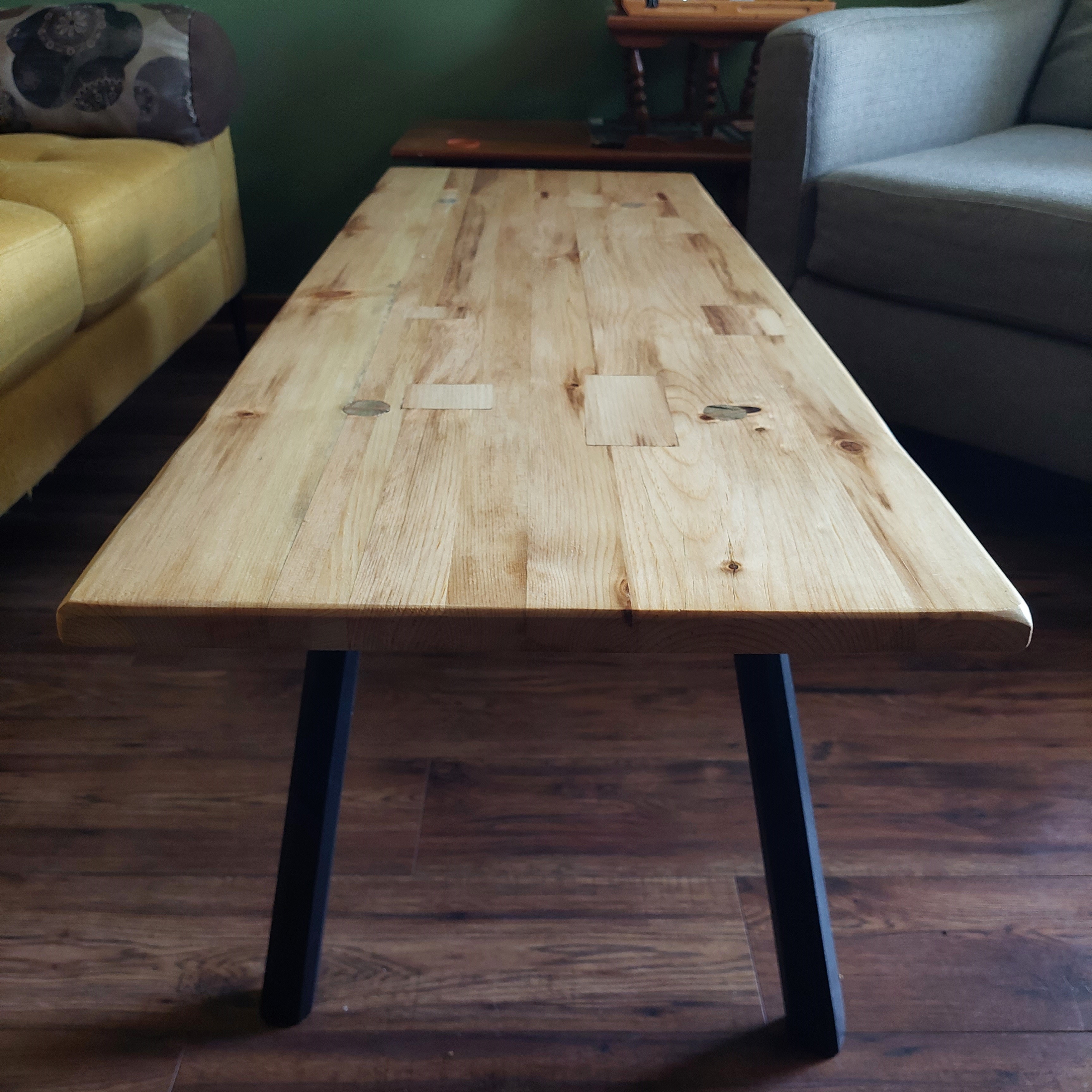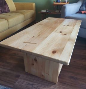 Coffee table with original through joinery. Poplar and pine pulled from the trash