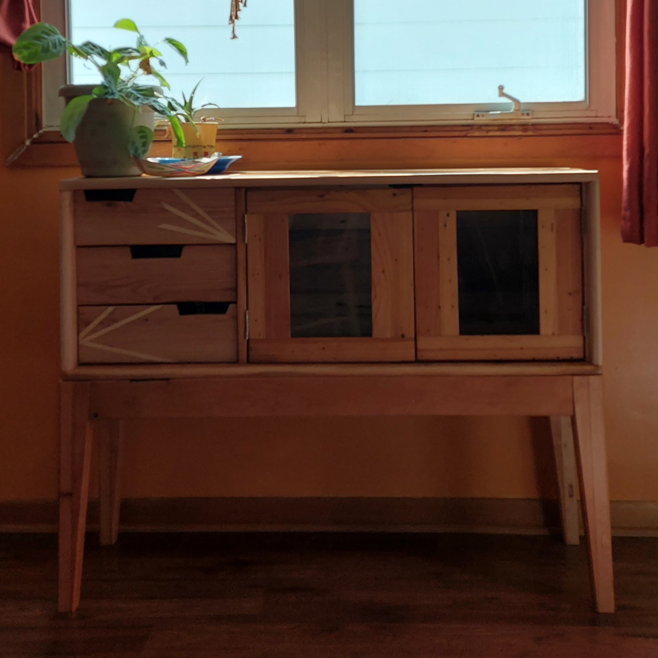 Buffet, using a variety of lumber including a plank of pine from the 1870s and old cedar door