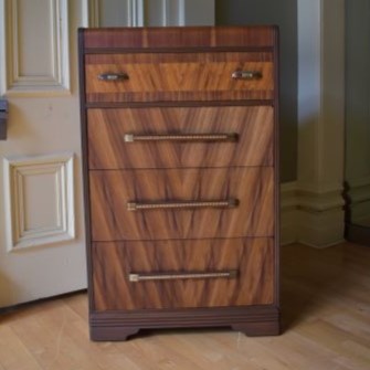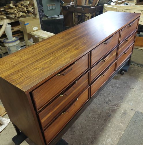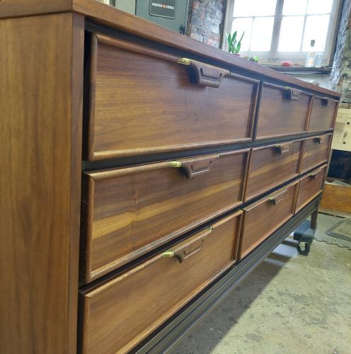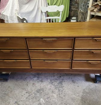 Mid Century Modern walnut, with faded cracked finish